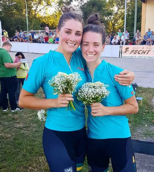 North-West Coast cycling stars Amy Cure and Macey Stewart have teamed up to lead an impressive medal haul for Australian riders at an international track meet in the German city of Ludwigshafen.
